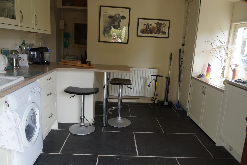 A separate fully fitted and equipped bright kitchen with quality units and worktops and a stable door to the front courtyard.
